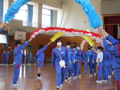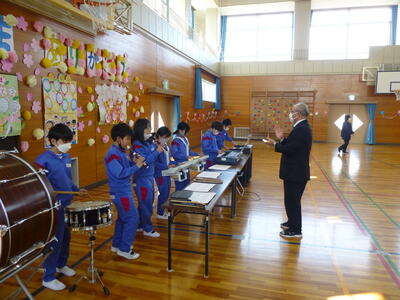 最後に、5年生の演奏する「威風堂々」に合わせて、4年生が花のトンネルをつくって、全校生で拍手をしてお見送りしました。