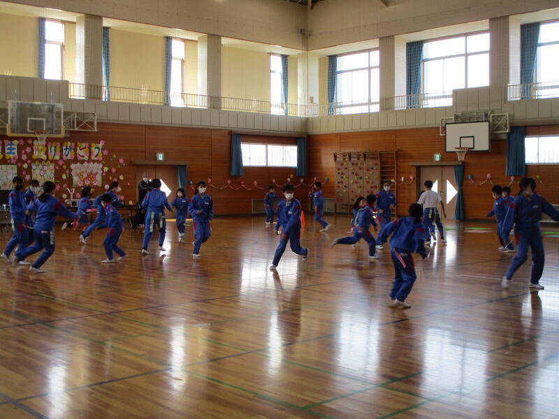 3,4年生は、大好きな6年生としっぽとりゲームをしました。結果はなんと、3,4年生の勝ち!