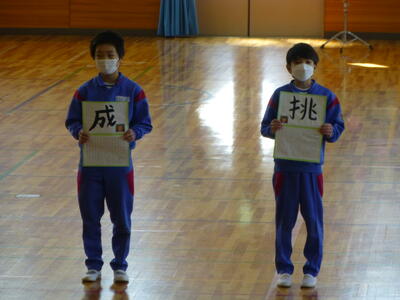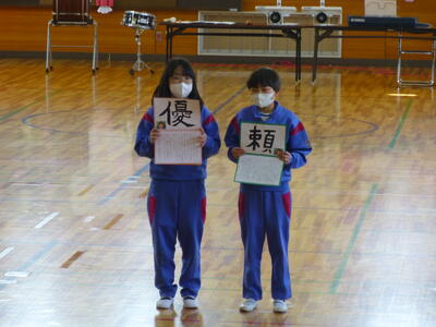 5年生は、6年生一人一人のよさを漢字一文字で紹介し、これまでの感謝と中学校生活へのエールを送りました。