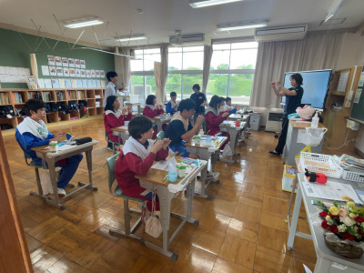 2025年5月27日 10時34分本日2学年の授業において、市健康づくり課より講師の先生2名をお招きして「歯っぴースマイル事業」(歯科指導)を実施しました。