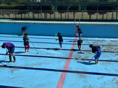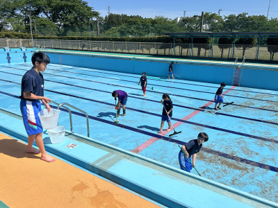 2025年5月29日 16時26分昨日と本日の各学年の体育の時間を活用して、プール清掃を行いました。昨日は1・2年生でプール半分、本日は3年生が残りの半分を1時間できれいにしてくれました。3年生が素早くテキパキと清掃する姿は、さすが最上級生と目を見張るものがありました。本校では、来週に市委託の業者の方々に仕上げの清掃を行っていただいた後、水を溜めて6月下旬頃からプールの授業をスタートさせる予定です。