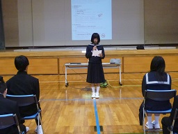 生活や生徒会活動の説明を1年生にわかりやすく行っていました。