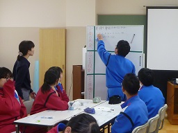 て、グループでディスカッションしながらそれぞれの考えを共有していました。