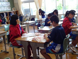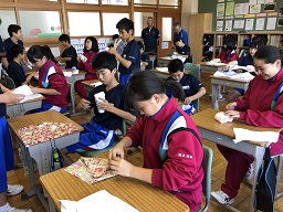 火の玉を小高区婦人会の指導で制作しました。生徒たちの頑張りで300個以