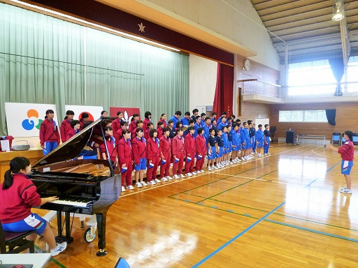 2018年10月23日 15時46分全校合唱の練習です。上級生がリードしながら1年生の「群青」を歌う姿もしっ