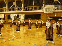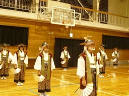 2018年10月26日 13時55分5校時の1年生は衣装を着て流れ山踊りを練習しています。