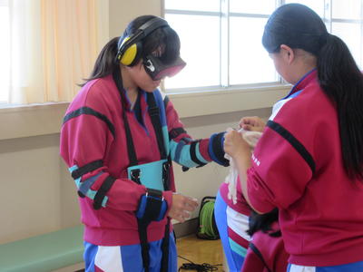 2019年6月13日 19時13分本日3年生は、福祉に関する授業(総合的な学習の時間)の中で市社会福祉協議会の職員の方を招いて福祉体験教室を行いました。そこで高齢者の疑似体験をしました。高齢者の身になり文字を書き取る、紙を切り抜く、新聞を読む、折り紙を折る、お箸を使って物をつかむ、パジャマを着るなど様々な体験をすることができました。今回の体験を通して、高齢者の方々の大変さを知るとともに、高齢者に対してどのようにかかわりを持てば良いのかについて理解を深める良い機会になったと思います。