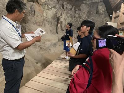 2019年9月18日 17時40分1学年は、17日(火)・18日(水)の2日間、地域の郷土民俗芸能伝承活動への参加や、郷土の歴史や文化、産業について考えたり関連施設を見学したりすることによって、自ら課題を見つけ、自ら学び、自ら考え、主体的に判断し、場に応じた問題解決をする能力を育成することを目的として、地域体験学習を行いました。17日は浦尻貝塚、大悲山の石仏、小高神社を文化財課の市職員の解説をいただきながら見学をしました。18日の午前中は南相馬博物館を訪れて相馬野馬追いの歴史等について学びました。午後には小高駅前通りを探険してまわりました。生徒たちは今回学んだことをレポートにまとめることになっています。