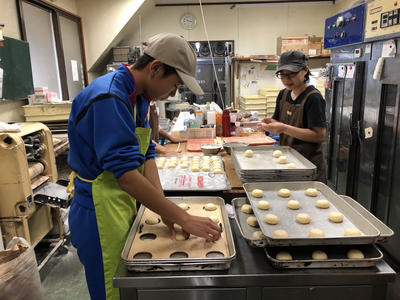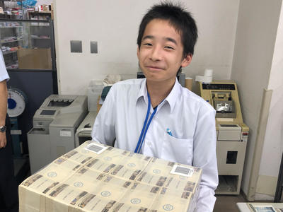 パン屋での活動の様子 銀行での活動の様子(本物の札束です!)