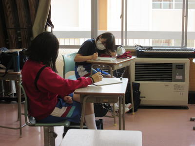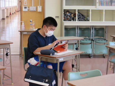 2020年6月5日 16時27分文化総合部とスポーツ総合部の部活動の様子を紹介します。文化総合部では、部員のそれぞれが目的とする活動を選び、ギター演奏やタブレット端末を活用しての調べ学習、少年の主張の原稿作成を行う姿が見られました。スポーツ総合部では校庭でティーバッティングを順番に行う姿が見られました。一時、夕立の雨が降ったり雷がなったりしましたが、活動時には天候が回復し生徒は生き生きとした表情で活動に取り組んでいました。