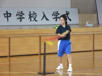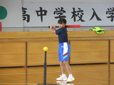 2020年7月1日 10時24分1年生保健体育では、体育館の中で柔らかいソフトボールを使用してティーバッティングをおこなっていました。体育館全体を使用して3カ所に分かれ、それぞれがのびのびとバッティングをしている姿が印象的でした。