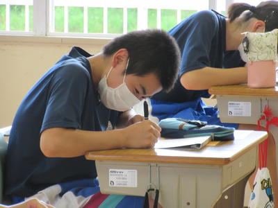 2020年7月2日 14時08分3年生数学の時間は、学力向上のための予算で購入した苦手単元チェックシートのファイルづくりをおこないました。全部で104枚のミニプリント問題で今後毎時間授業はじめに実施していくようになります。実力アップに向けて毎時間こつこつと力を積み重ねてほしいと思います。「継続は力なり」です。