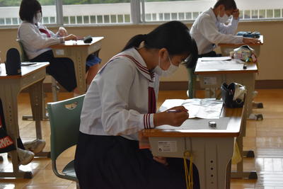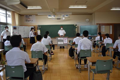 2020年9月11日 14時11分2日間の修学旅行もあっという間に終わり、今日の1校時目には解団式を行いました。修学旅行に参加しての感想発表では發田君が「例年とは違った形の修学旅行でしたが、先生方やガイドさんたちのお陰で楽しい良い思い出づくりができました。」という内容の発表がありました。今回の旅行では天候が心配されましたが、見学先では大きく天候が崩れることもなく、常日頃の3年生の行いが良かったからだと思います。解団式の後には修学旅行新聞作りを進めました。完成して掲示されるのを楽しみに待ちたいと思います。