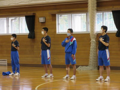 2020年10月20日 18時38分群青祭(文化祭)まであと4日とせまる中、開催当日に向けて午後の活動が活発化しています。学年毎の準備時間の後、合唱練習を体育館で行っていますがその時の様子を写真でご覧ください。コの字を描くようにお互いの間隔を広く取って立ち、音楽担当の先生の指示を受けながら合唱曲「群青」の練習を進めていました。まだ改善の余地がありますが、本番に向けて一歩ずつ着実に前進している様子がうかがえました。