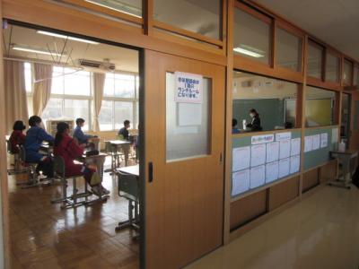 2021年2月12日 15時08分今年度はコロナ禍の影響により、第1回目の授業参観は中止となり、本日今年度最初で最後の授業参観を実施しました。今回、ソーシャルディスタンスを始めとした新型コロナウイルス感染症予防対策のため、保護者の皆様には教室廊下からご参観いただきました。各学年の学級担任が授業を行い、どの学年の生徒も積極的に授業に取り組む姿が見られました。本日はご多用の中、来校いただいた保護者の皆様にはたいへんお世話になりました。