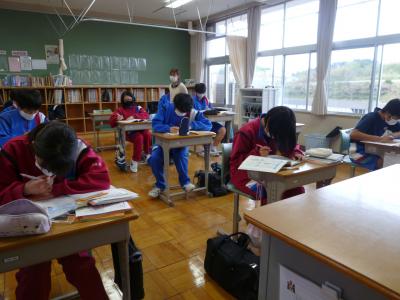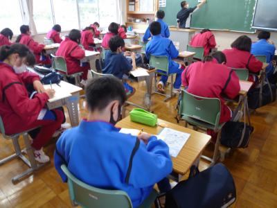 《2学年》担任より配られた学習プリントに、黙々と取り組んでいます。心地よい学習する雰囲気が漂っていました。
