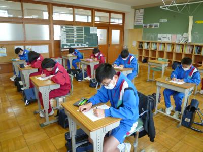 《3学年》さすが受験生!受験対策の問題集を広げてそれぞれが問題を解いていました。時間を有効に活用することも受験対策の1つですね。