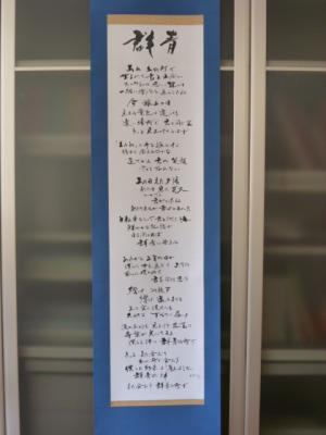今回は、『群青』の歌詞が書いてある書を掛け軸にしてものを寄贈いただきました。