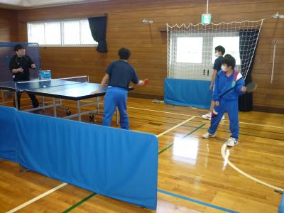 スポーツ総合部では、バドミントンや卓球など通して体作り運動を行っています。