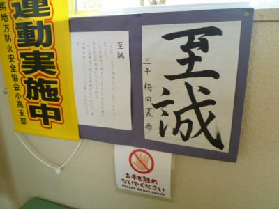 生徒昇降口には教えの1つである「至誠」の解説が掲示されています。
