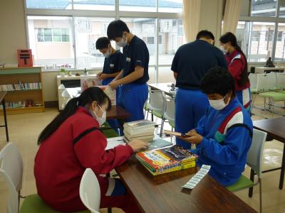 早速、図書委員の皆さんが昼休みの時間を活用して、図書の整理をしていました。