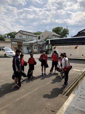 ソフトテニス部の選手を乗せたバスも無事学校に到着です。