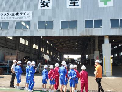 会社の概要について説明を受けた後、全員ヘルメットをかぶり、大きな工場を見学させていただきました。