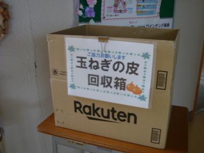 7月1日まで生徒昇降口に専用の回収箱を設置しています。ご家庭ででた玉ねぎの茶色の皮をいれていただけるとありがたいです。(お子様に持たせて下さい。)