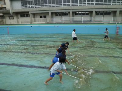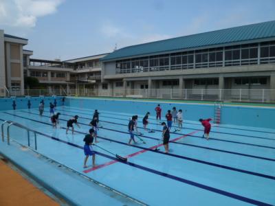 全校生の皆さんが一生懸命に掃除をしてくれたおかげで、プールがとてもきれいになりました。