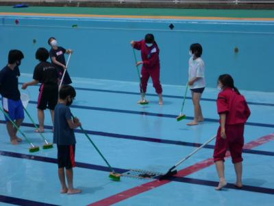 トップバッターの3年生の時は、まだ少し水が残っていましたが、3年生が一生懸命に水と砂などを排水口へ送り出してくれました。