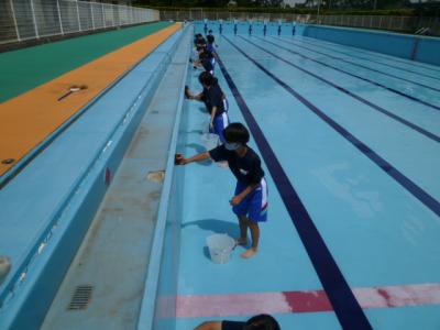 仕上げは2年生です。プール内側の側面の汚れもゴシゴシと丁寧に汚れを落としてくれました。