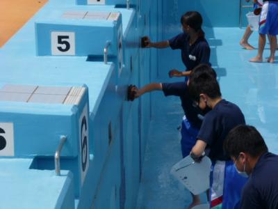 早くプールに入りたいなぁと、笑顔で作業をしていました。