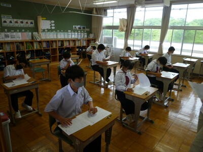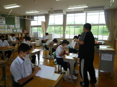社会のテストが配られ、早速黙々と問題を読み解答をしています。