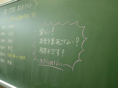 あるクラスの黒板には、このように担任の先生からの熱いメッセージが記されていました。