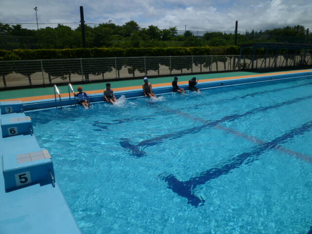 6月中旬に行った全校生によるプール清掃や、東京電力の職員方によるボランティア清掃により、すっかりきれいになった50mのプールは、先週中頃には水の注水も完了し、生徒の授業を今か今かと待ち構えておりました。