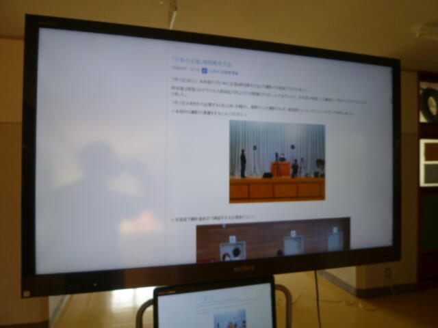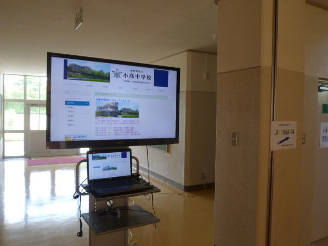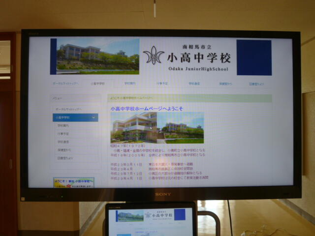 この『インフォメーションディスプレイ』は、自動で日々更新される小高中学校のホームページの「学校だより」のコーナーを映し出す仕組みになっています。
