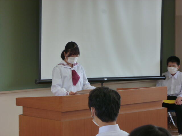その後各学年の代表生徒より「夏休みの反省と2学期の抱負」について発表が行われました。