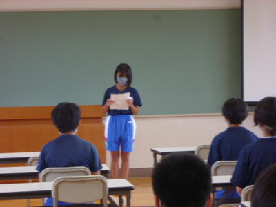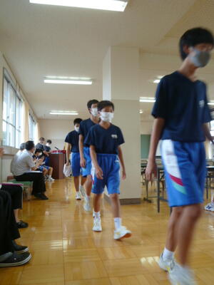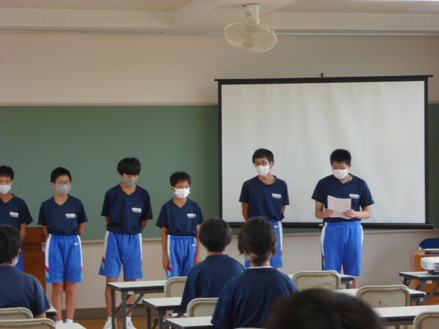 2021年8月24日 10時09分8月23日(月)の始業式の後に、多目的教室において9月1日(水)に、楢葉町総合グランド内駅伝コースにて行われる相双地区駅伝大会に出場する選手の壮行会と、8月25日(水)に行われる相馬地方中学校英語弁論大会の壮行会が実施されました。