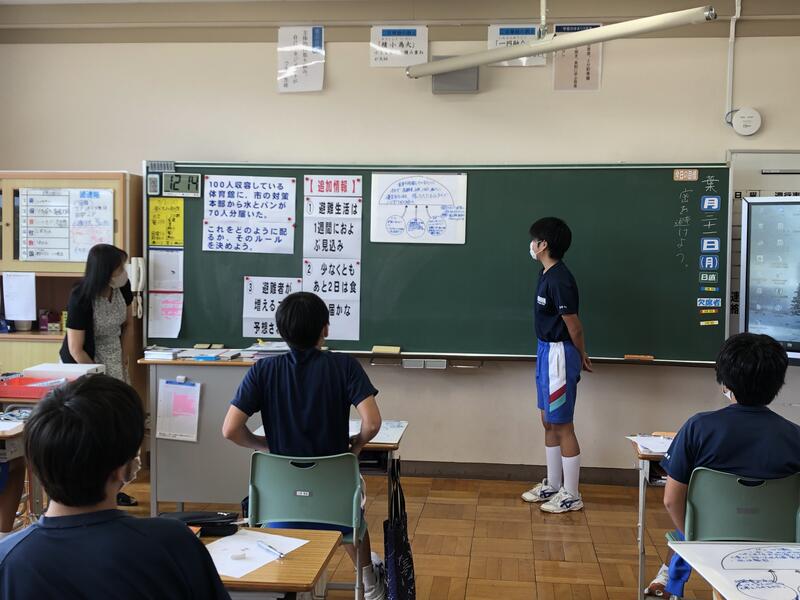 [学習課題]100人収容できる避難所(体育館)に、市の対策本本部から水とパンが70人分届きました。どのように配ればよいでしょうか?ルールを決めましょう。