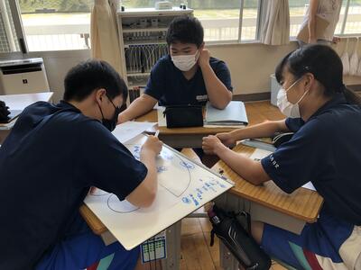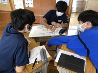 (興味・関心が高まった生徒たちは、グループで話し合いを始めました。)