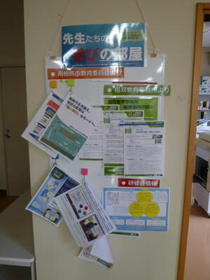 職員室も「先生たちの『学びの部屋』」の掲示板も、内容が更新され、ちょっとした先生たちの学びの場所になっています。