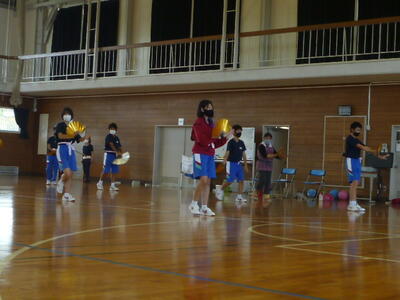 全体での通し練習の様子です。暑い中ですが頑張っています。