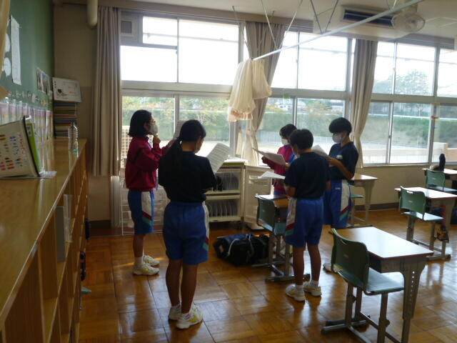 初日の今日は、多目的ホールで男性パートの練習が行われ、各学年の教室では女性パートのリーダーが中心となって、タブレットやデジタル黒板を活用した自主練習が行われました。