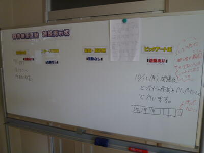 生徒廊下には、各係の連絡掲示板が準備され、各係の仕事内容や進捗状況が分かるようになっています。