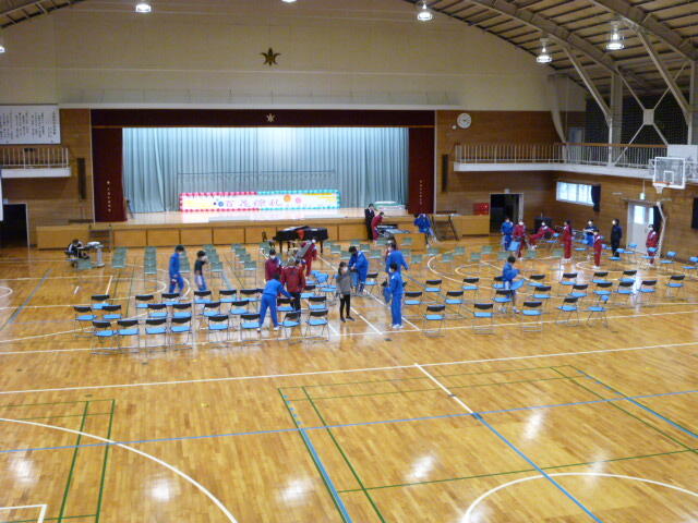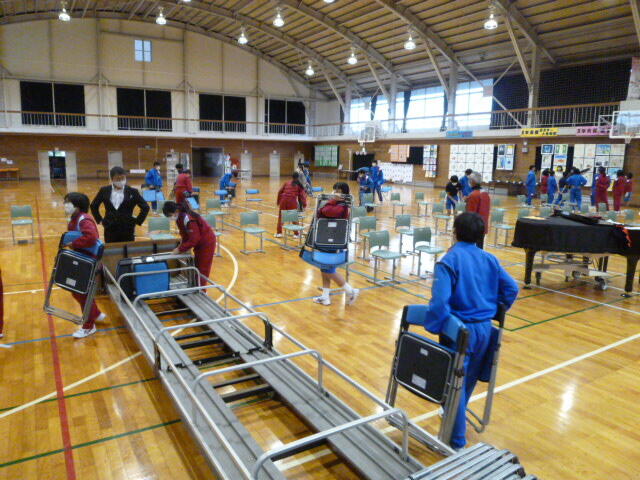 みるみる会場が仕上がっていきます。ここでも3年生がムードを盛り上げてくれています。