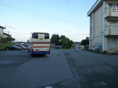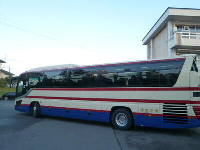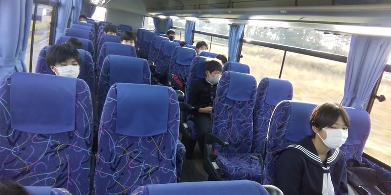 6:50、予定通り中学校集合組がそろい、出発のあいさつを済ませ、バスに乗車です。
