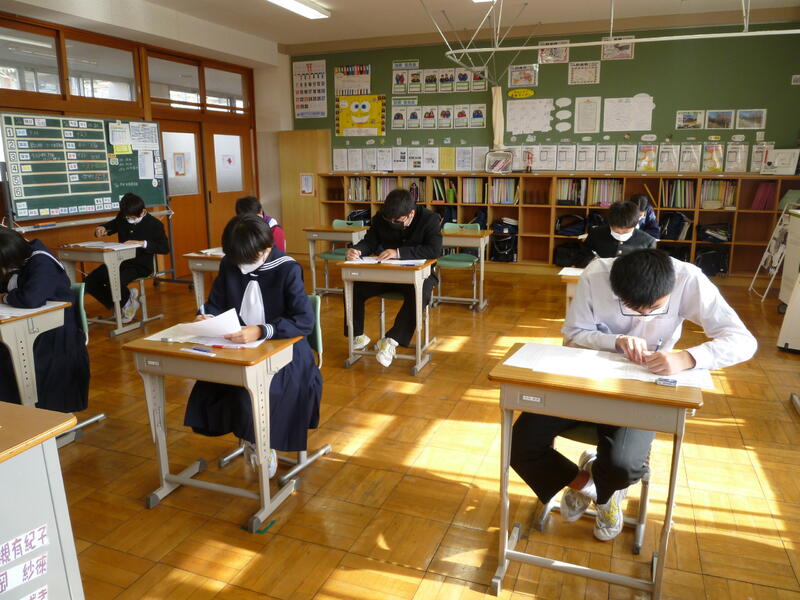 生徒は、どの教科のテストにも真剣にチャレンジしています。