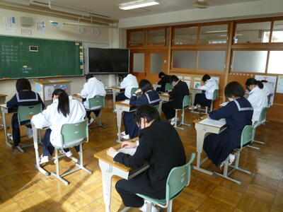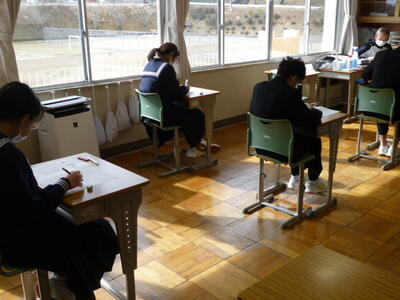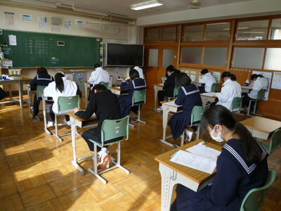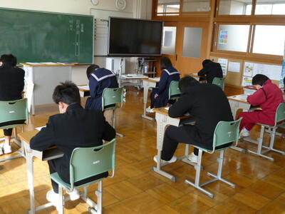 2月17日(木)、朝から舞い散る寒い中、1・2年生の学年末テスト(1日目)が実施されました。