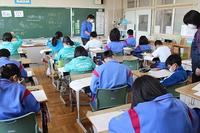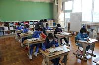 小高区4小学校は各クラスの児童数が多くないので机と机の距離は広くとれるのですが、6年生は20名の在籍なので結構混み合っています。それでも「密」接・「密」集しないように、できるだけ距離を取って配置しています。