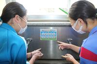 ・給食当番の健康チェックを強化しています。対面しないで会食しています。